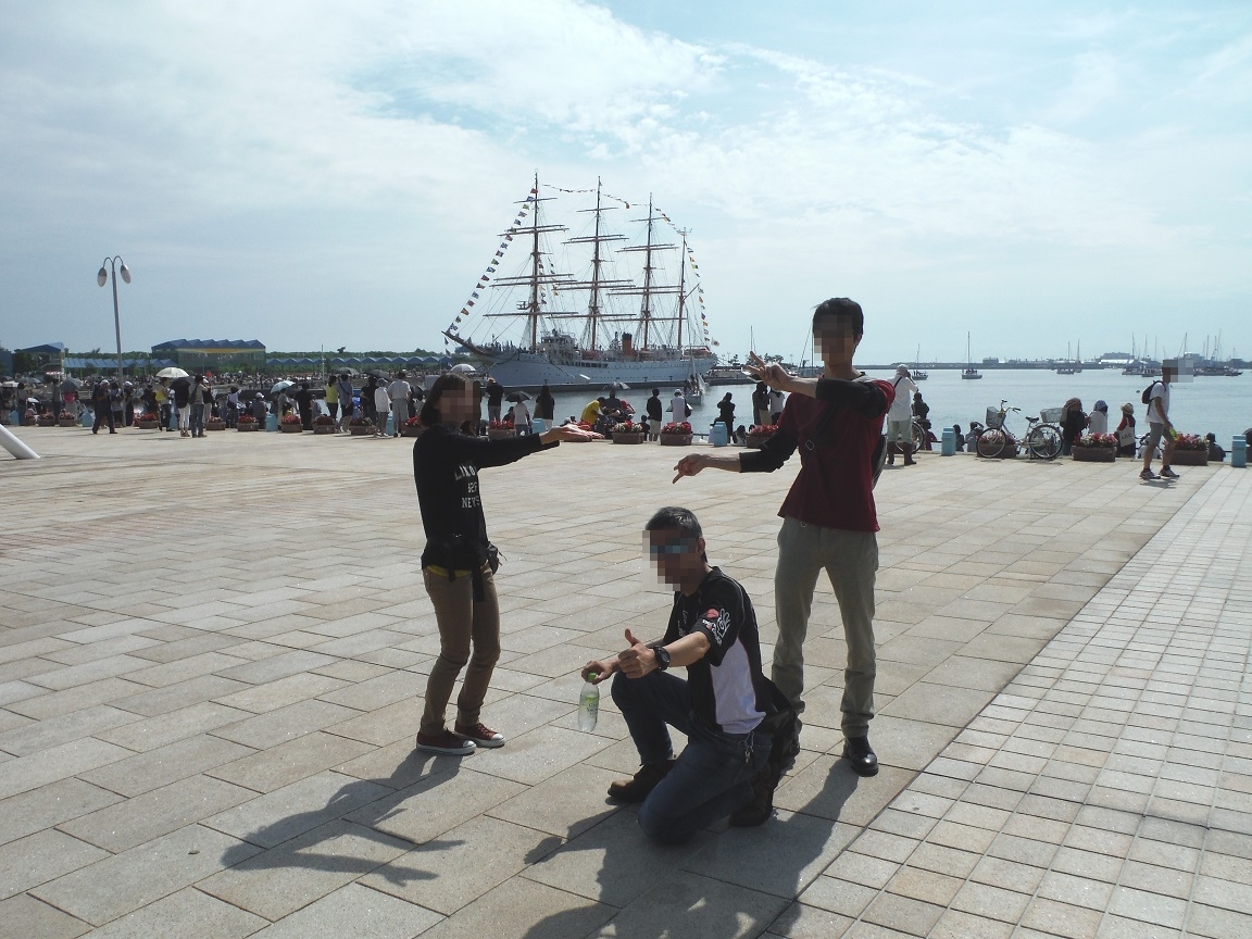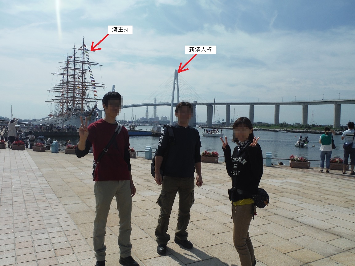 気を取り直して、海王丸と新湊大橋をバックに撮影。