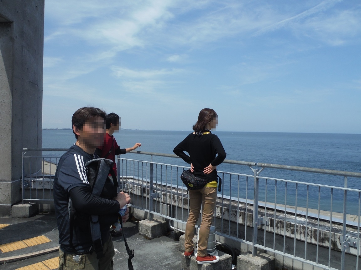 展望台に上がって海を望む。