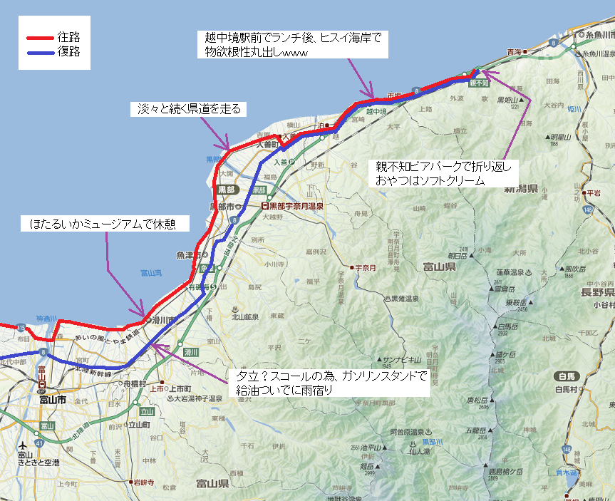 富山県を横断し、新潟県に入ったよー