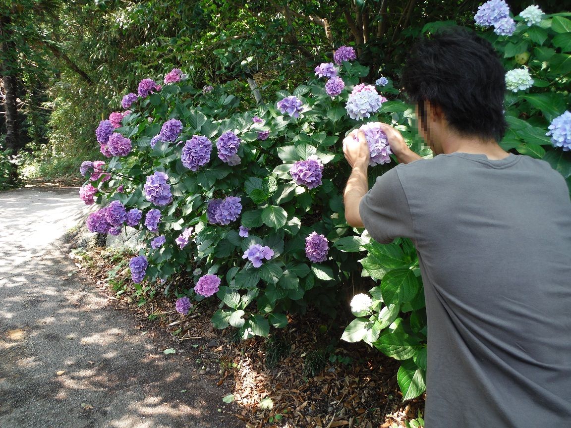 アジサイに現実逃避するこげ黒さんw
