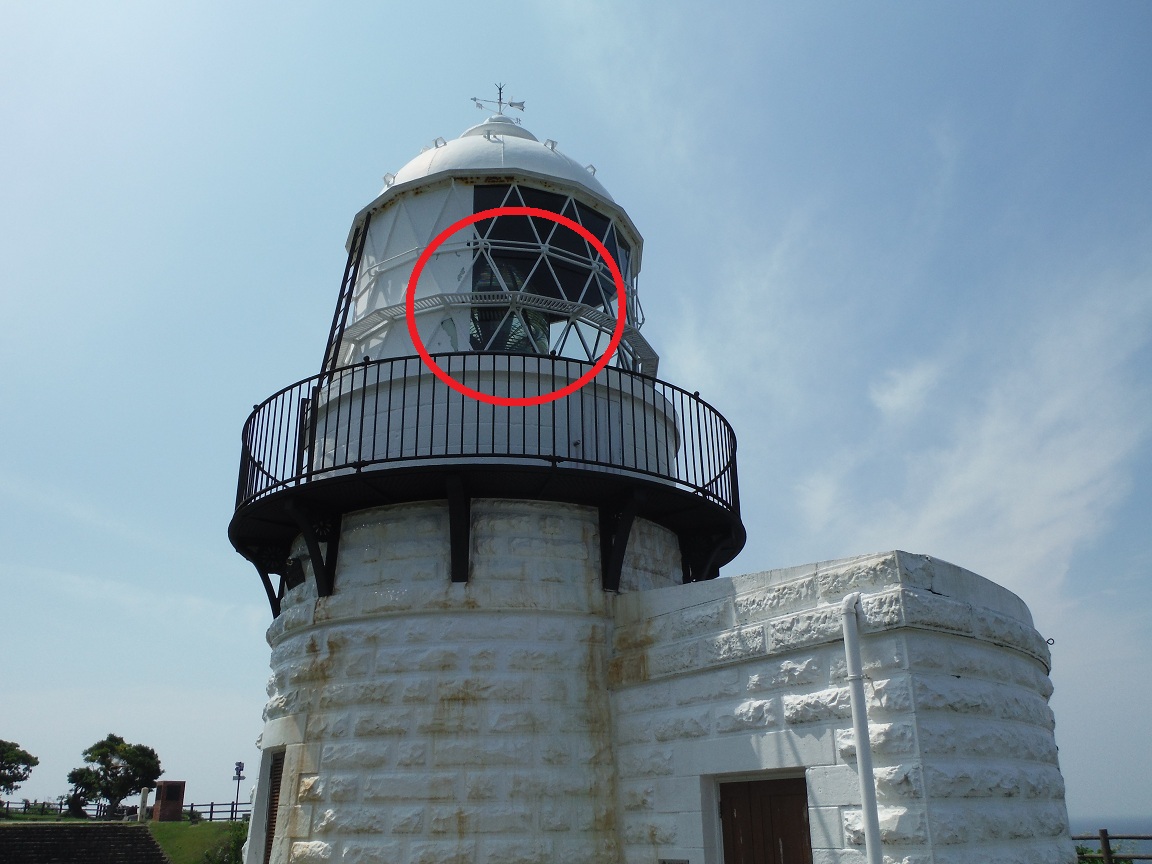 現在も活躍している「禄剛崎灯台」、反射板がミラーボールの様だ。