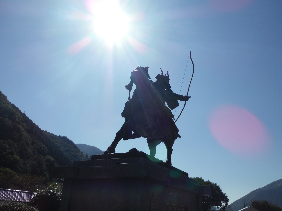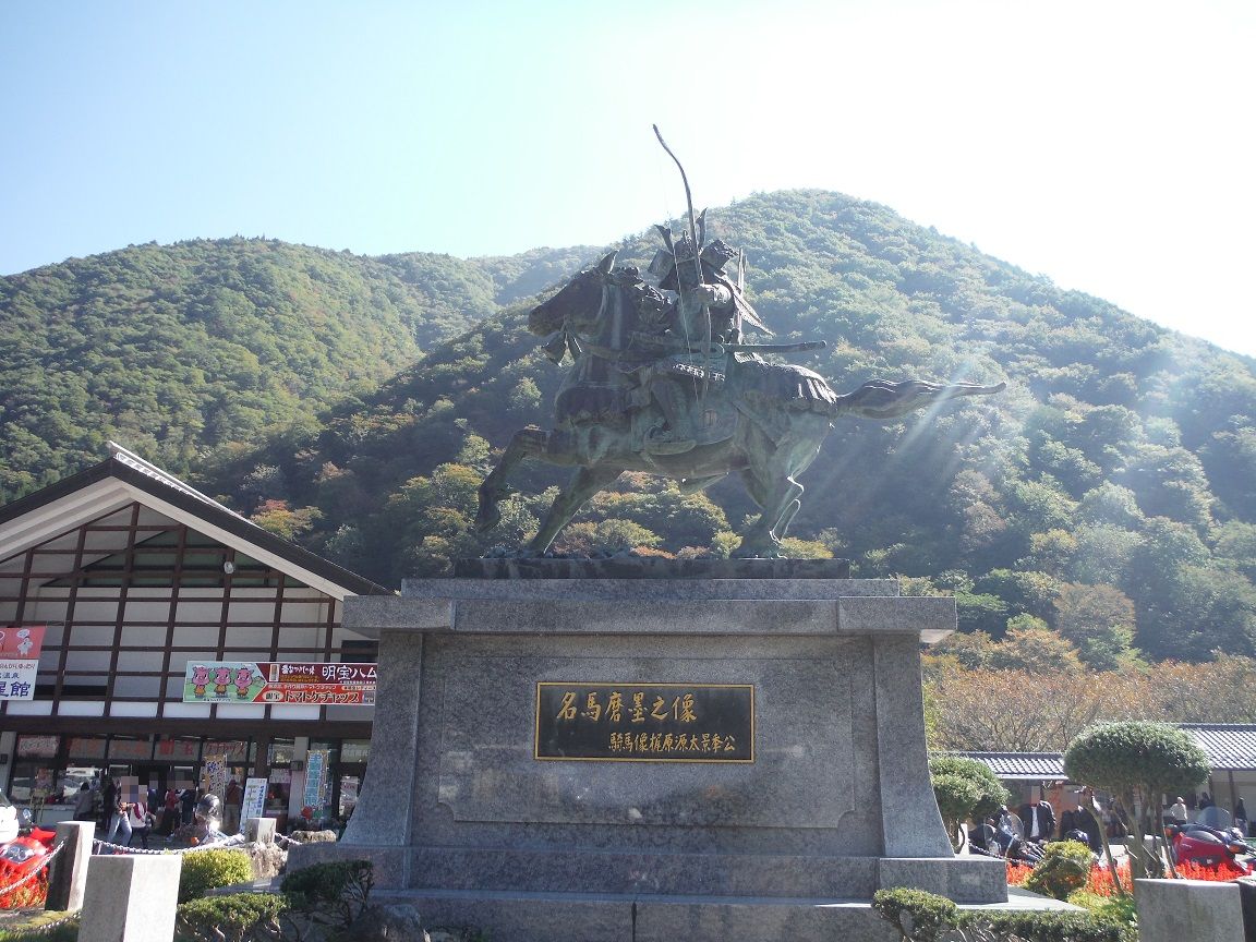 源平時代?の武将、梶原景季の愛馬「麿墨(するすみ)」の産地とのことで銅像がそびえ立つ。