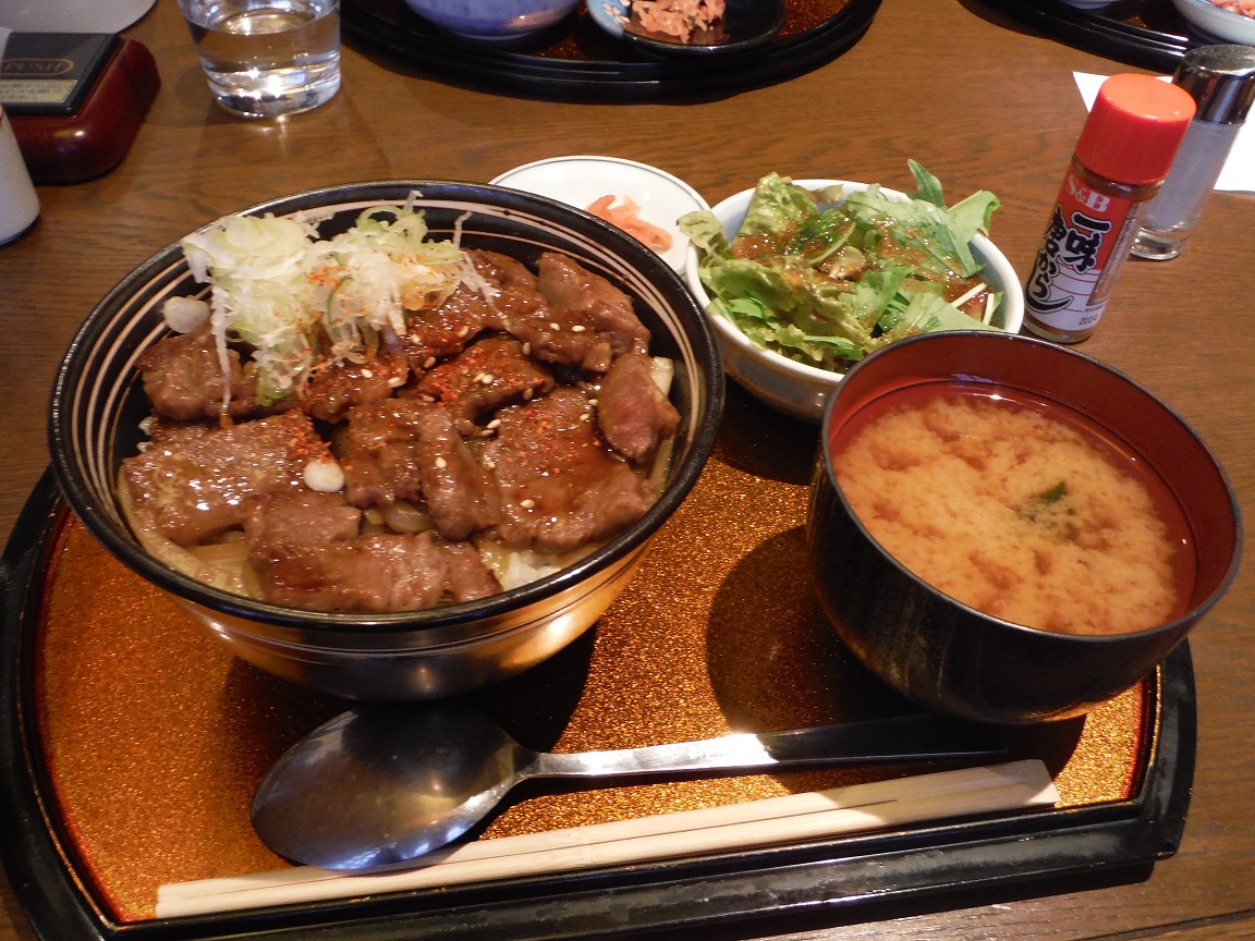 ワッチとこげ黒さんは「飛騨牛ネギ塩カルビ丼」、サッチャーとCOSは「飛騨牛カルビ丼」、TYくんは「飛騨牛ミニカルビ丼&高山ラーメンセット」で満足満足(^3^♪