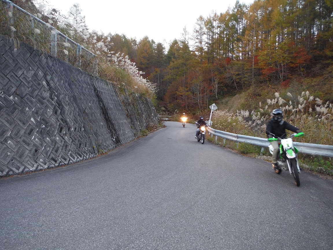 日が傾いて薄暗くなってきたので、完全に暗くなる前に峠を降り切りたいところ。