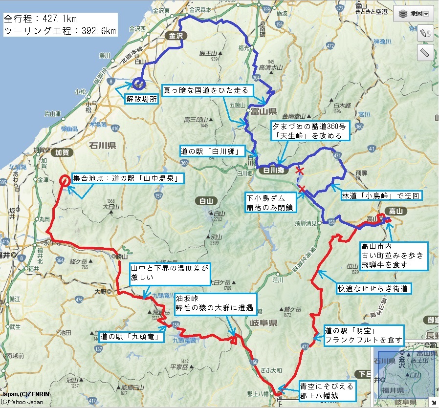 あとは白川郷までひたすら下るのみ(みんな異常なくらいハイw)