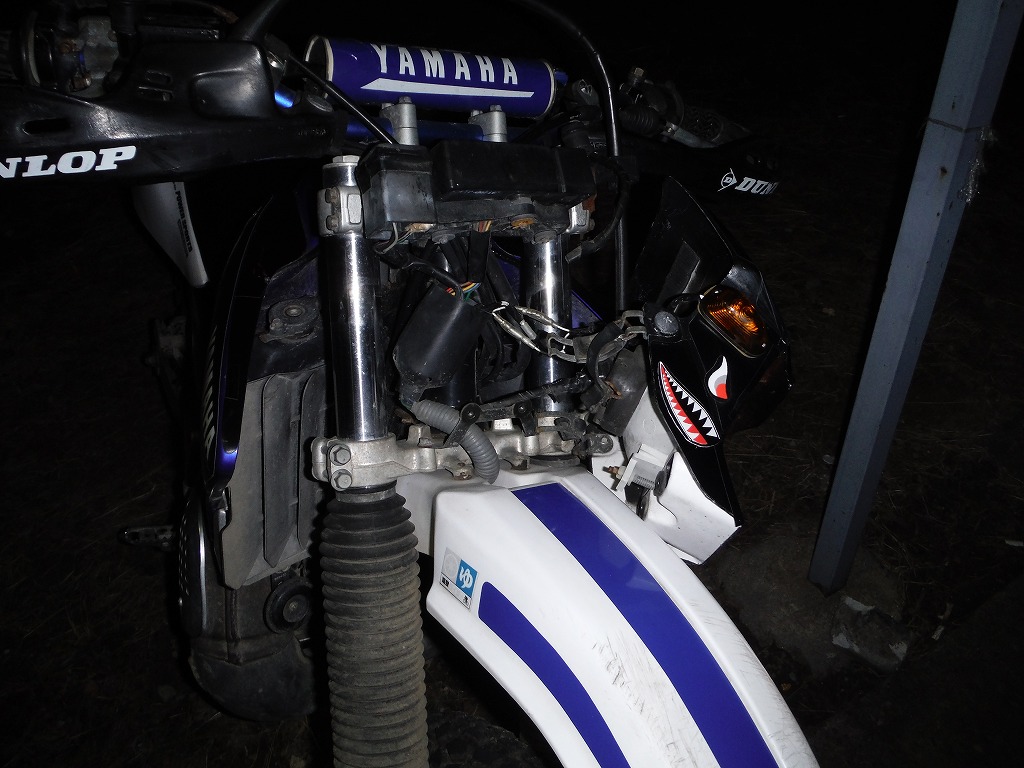 ご老体LANZA故、ハーネスの劣化も考えられるが、先週のG2林道ツーでの転倒が原因だろうね。