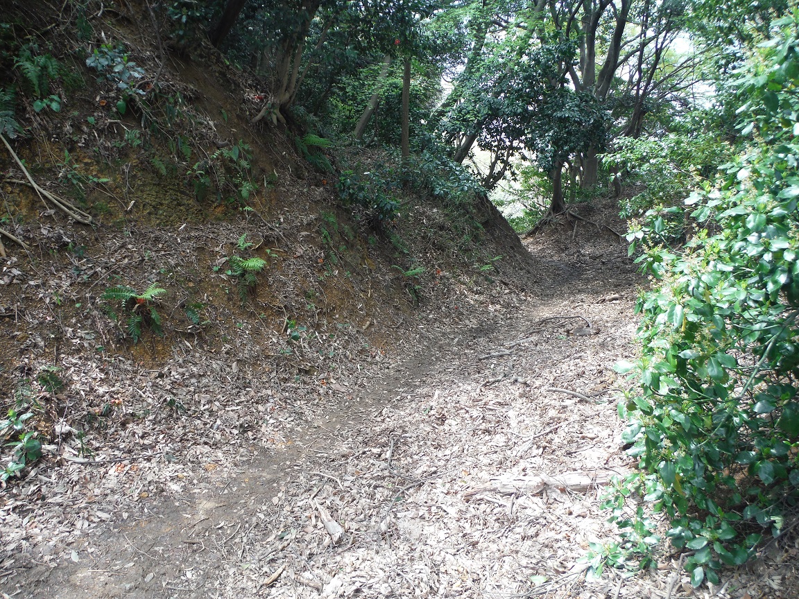 昇るだけ昇ったから後は下るだけ、階段は無くなりつづら折れの舗装路に変わった。