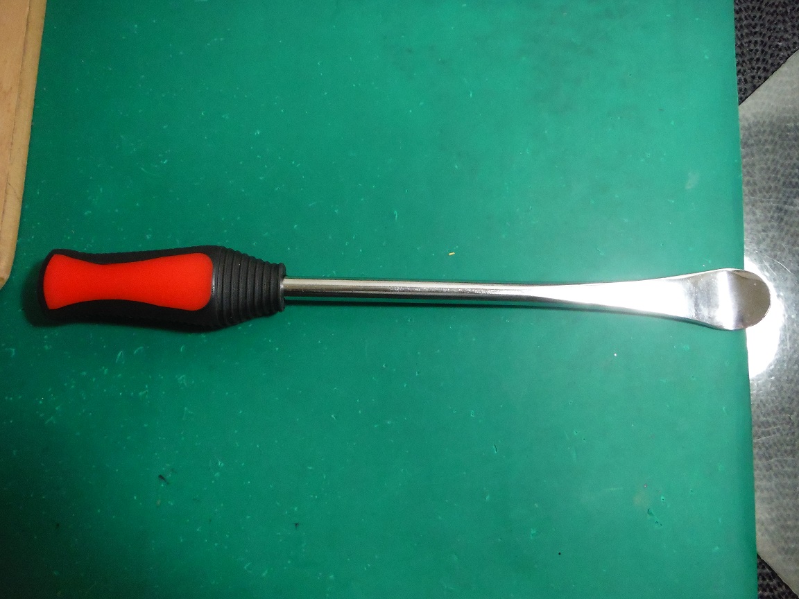 今まで愛用していたエーモンのタイヤレバー(¥500)よりもヘラ先が薄い上に、グリップ付きの長い柄が頼もしい☆