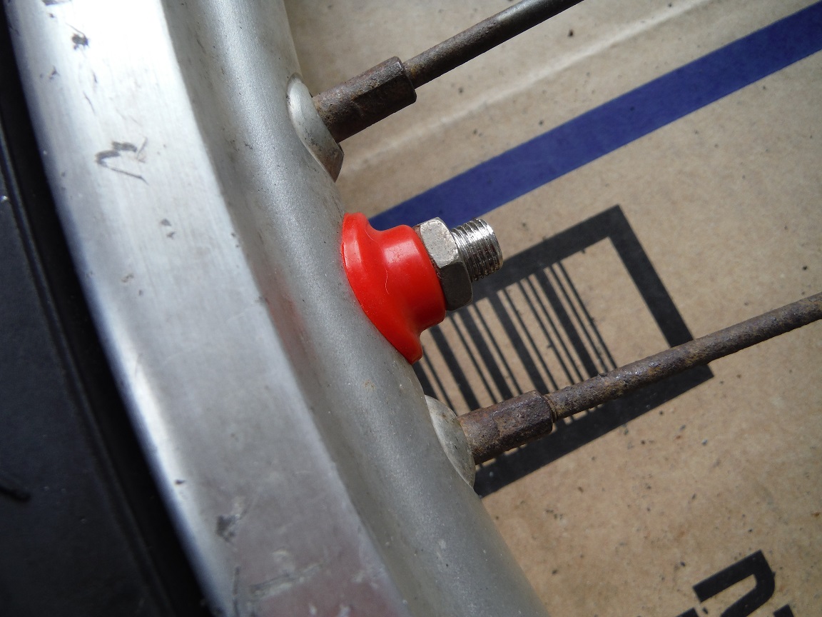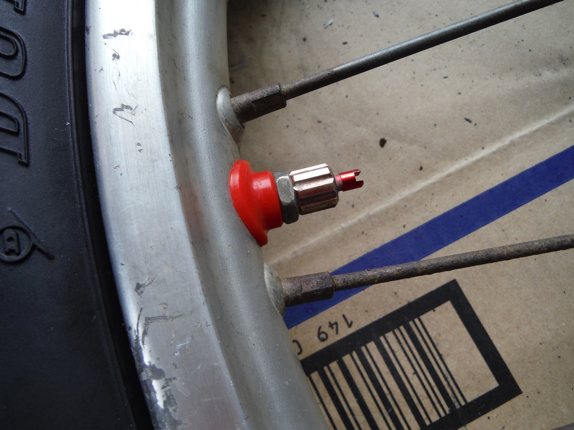 バルブキャップ(ムシ回し付き)を付けたところ。