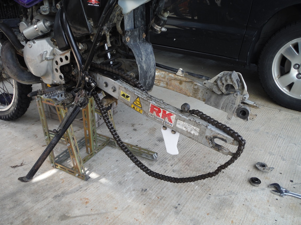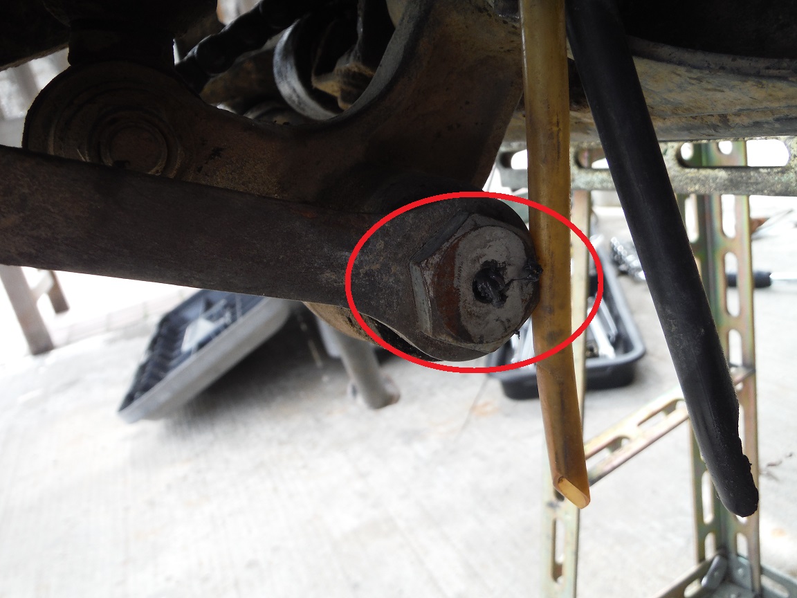スイングアームリンクのグリスニップルが欠落しているので、お漏らししているの図w