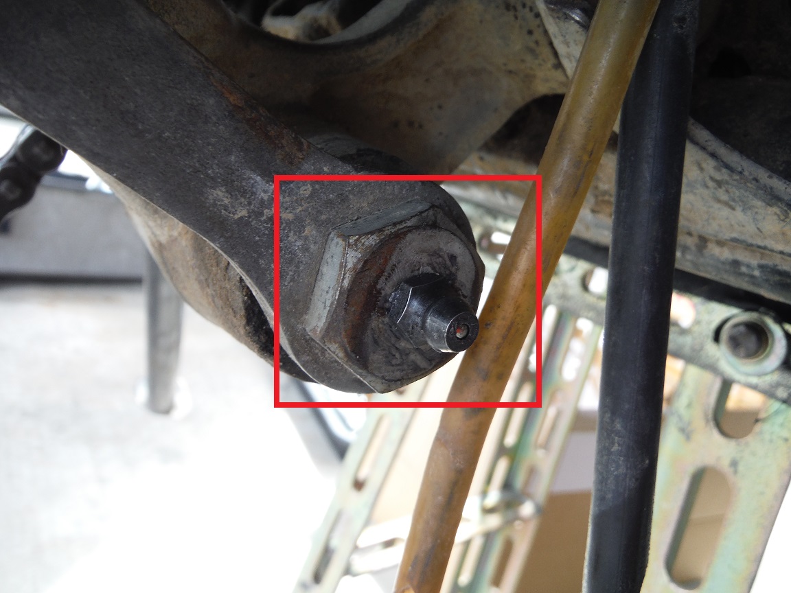 スイングアームリンクのグリス注入用。