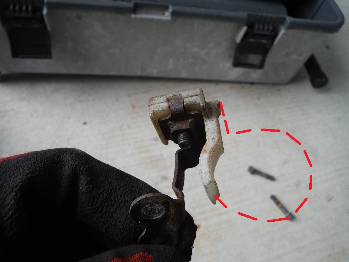 ブレーキガイドを除去してペンチでステーを曲げる。