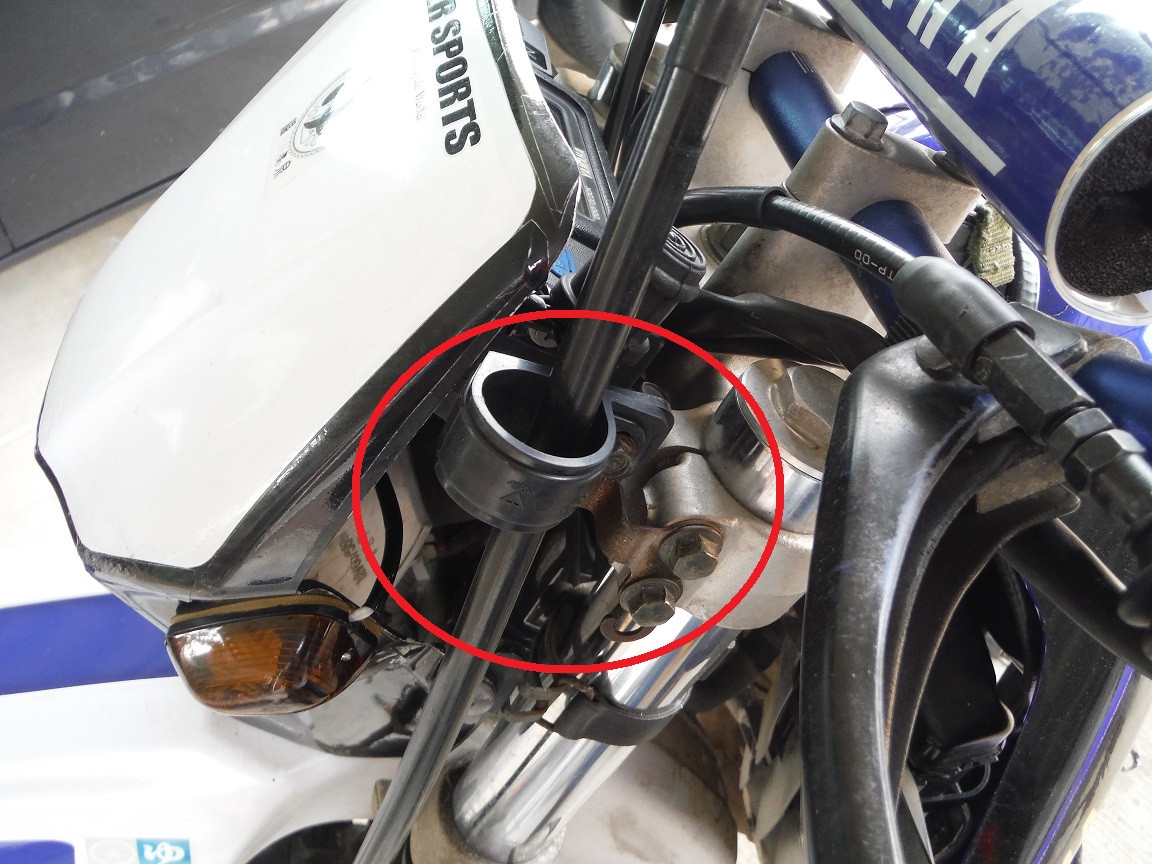 フロントフォーククランプに共締めされているガイドステーを外す。