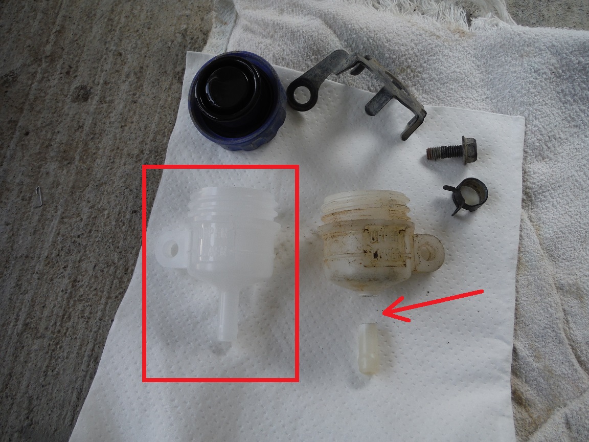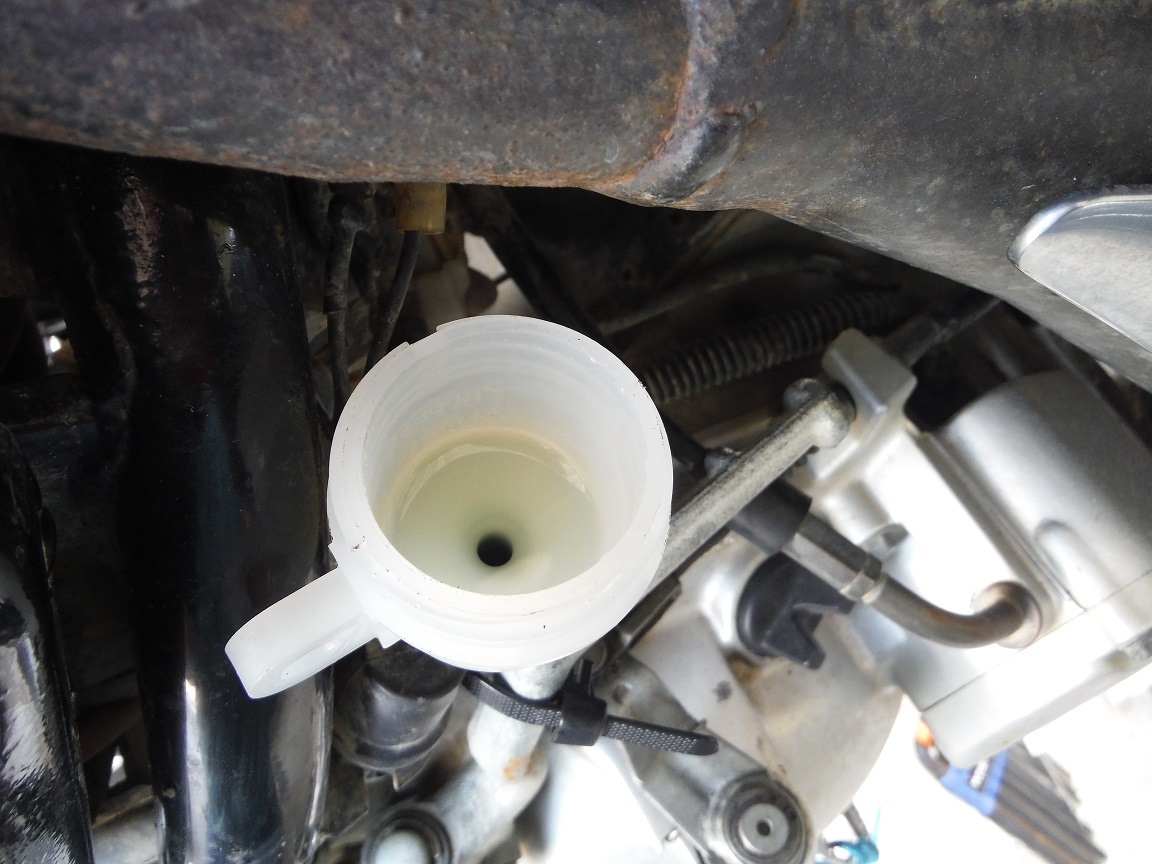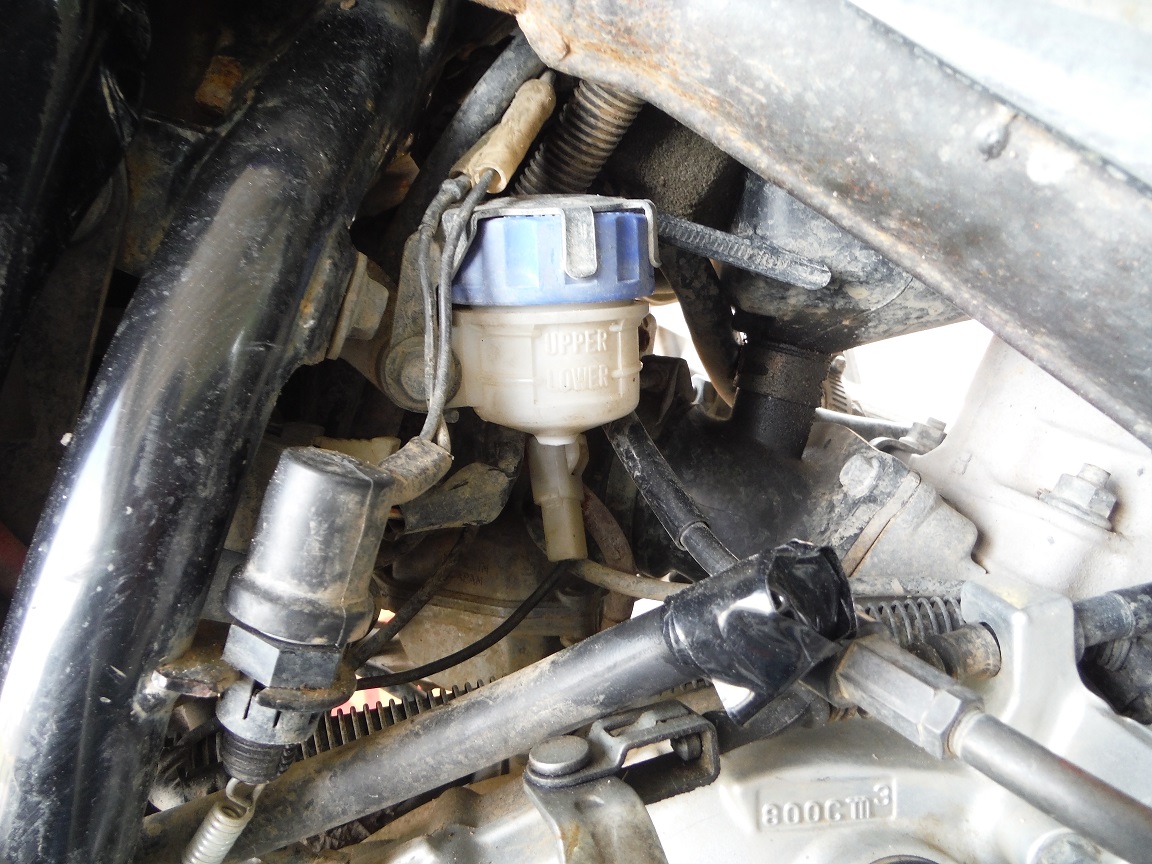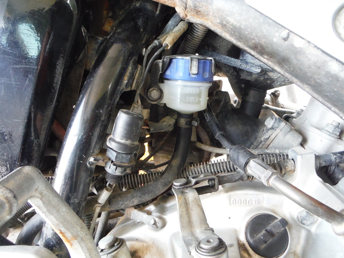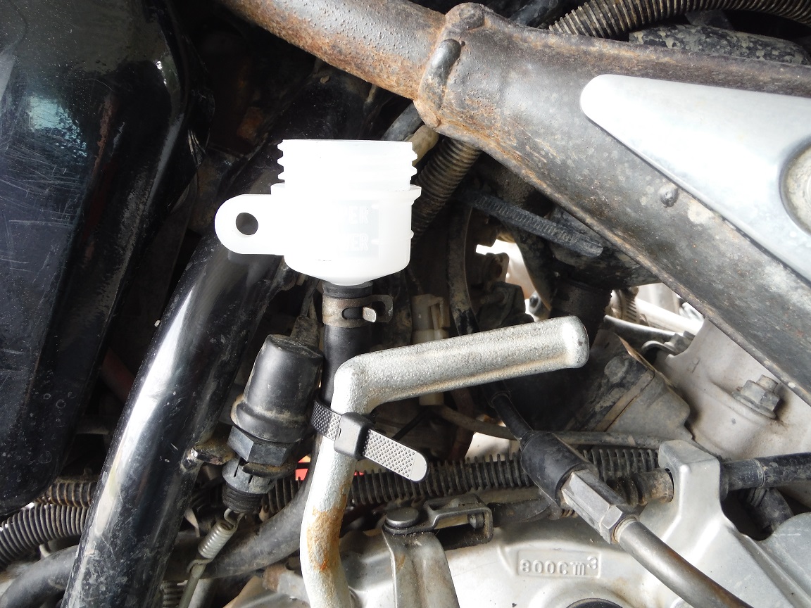 先週の木こりツーによって破壊されたリアブレーキリザーブタンクを交換する簡単なお仕事です(^^b
