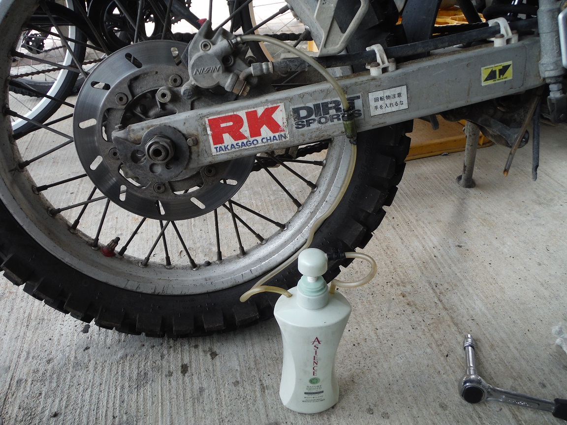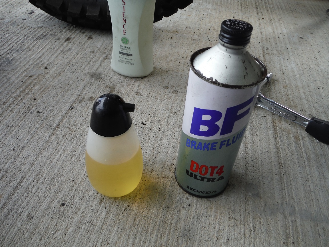 ブレーキフルードの色が変わる、すわなち新しいブレーキフルードに入れ替わるまで作業を繰り返す。