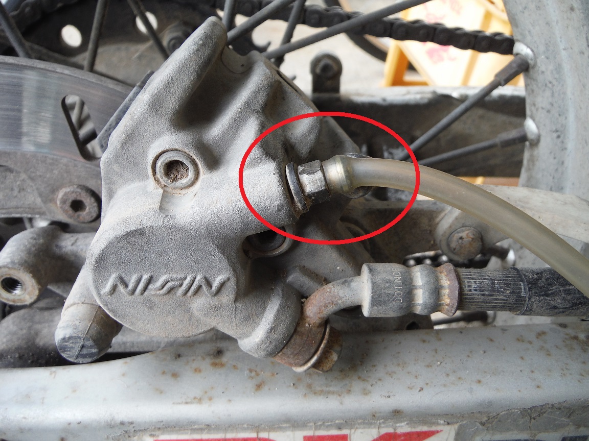 キャリパーのニップルを少し緩める(緩めすぎるとネジの隙間からエアが入ってくるので、一向に作業が終わらないyo!)